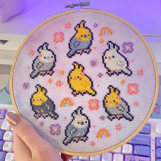 Groovy Spring Cockatiels Digital Cross Stitch Pattern PDF