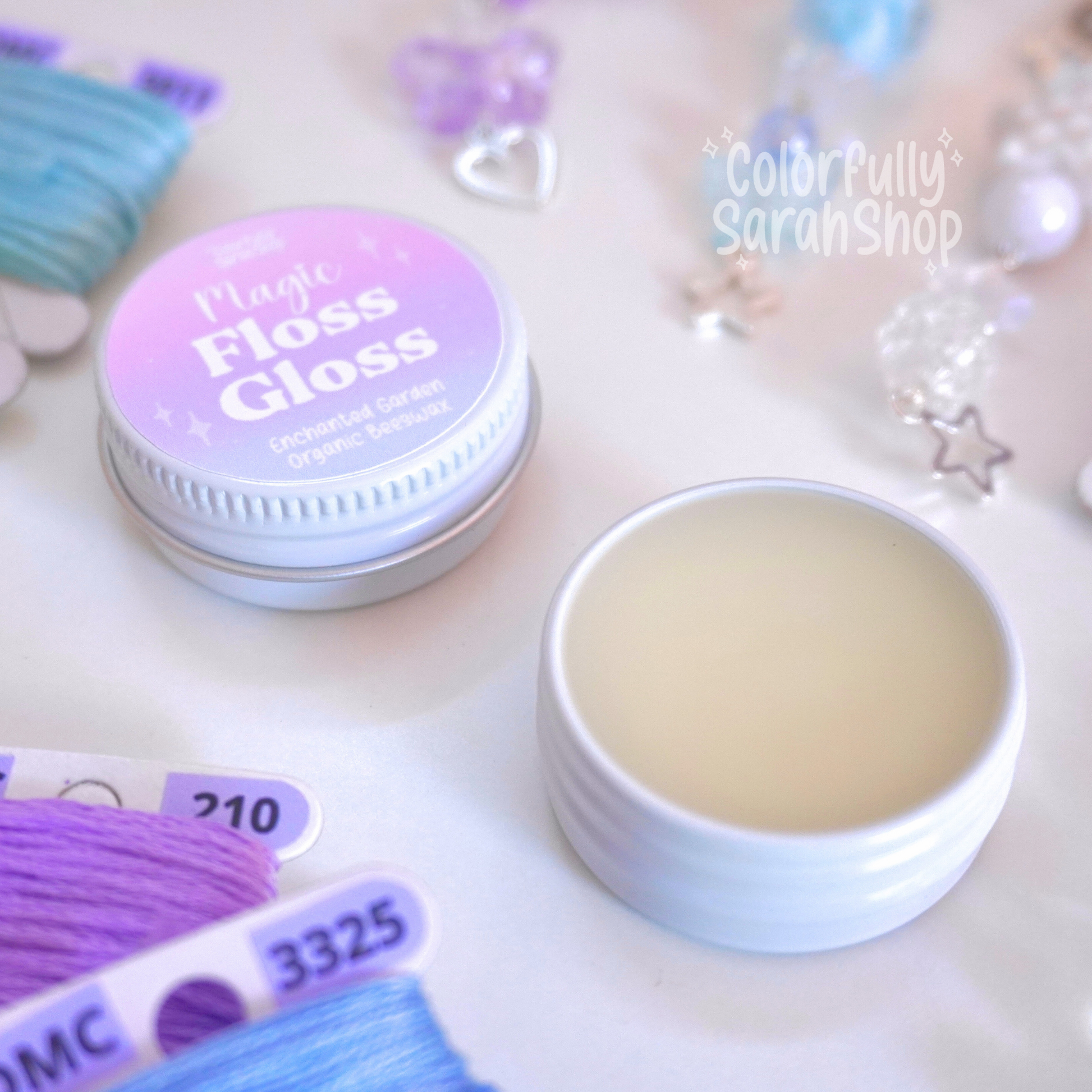 Magic floss gloss is the perfect tool for preventing tangles and making your embroidery floss easier to work with. It is made with high quality, triple filtered, organic beeswax with no additives or impurities. Beeswax has been used for generations as a natural thread conditioner. To use, hold the tin in your hand and press your thread into the tin using your thumb. Take your other hand and pull the floss as you're pressing to evenly distribute the wax onto your thread. Ta-da, you're ready to stitch!